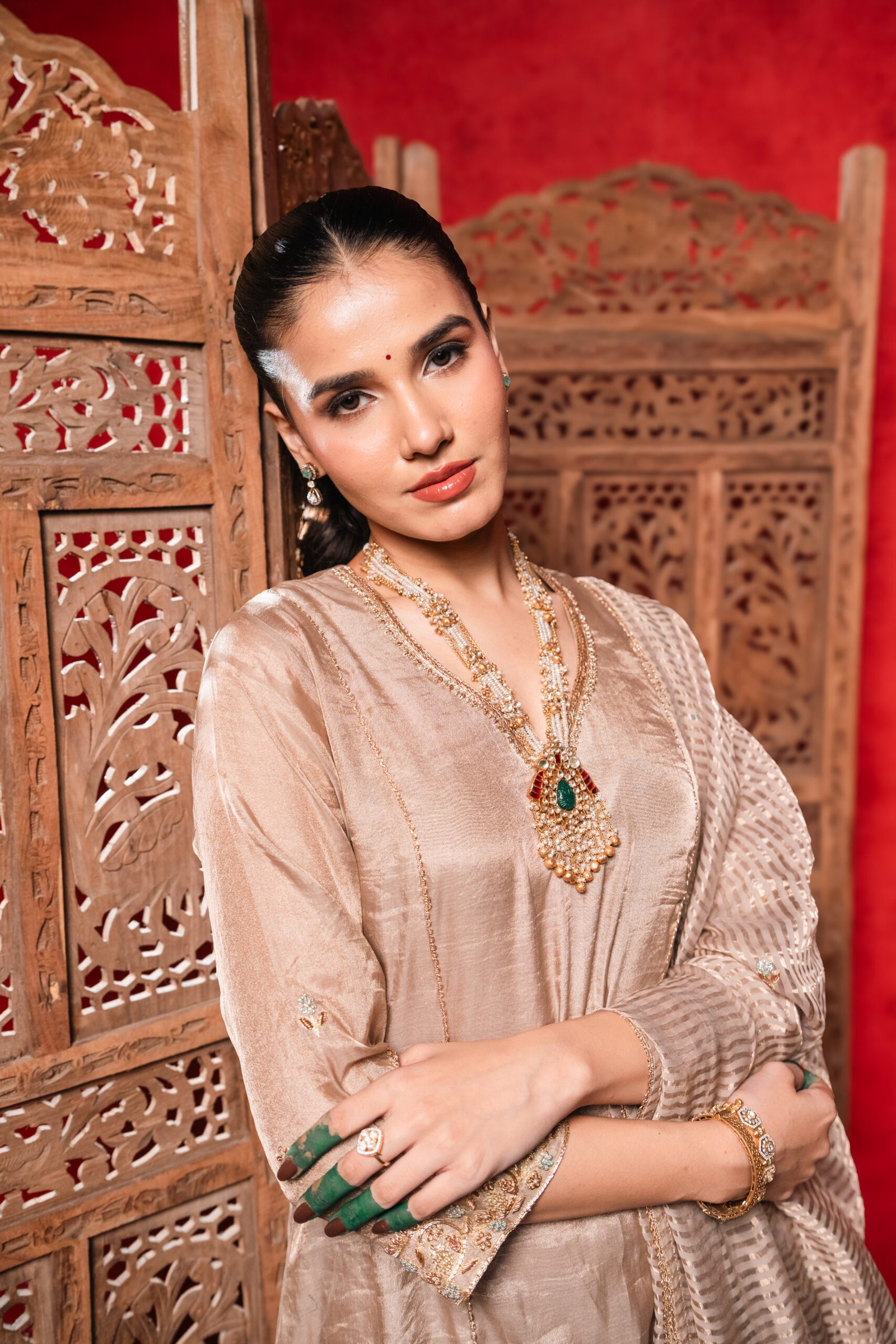 Rich Festive: Elevate with statement earrings, metallic heels, and a bold lip for receptions and parties.