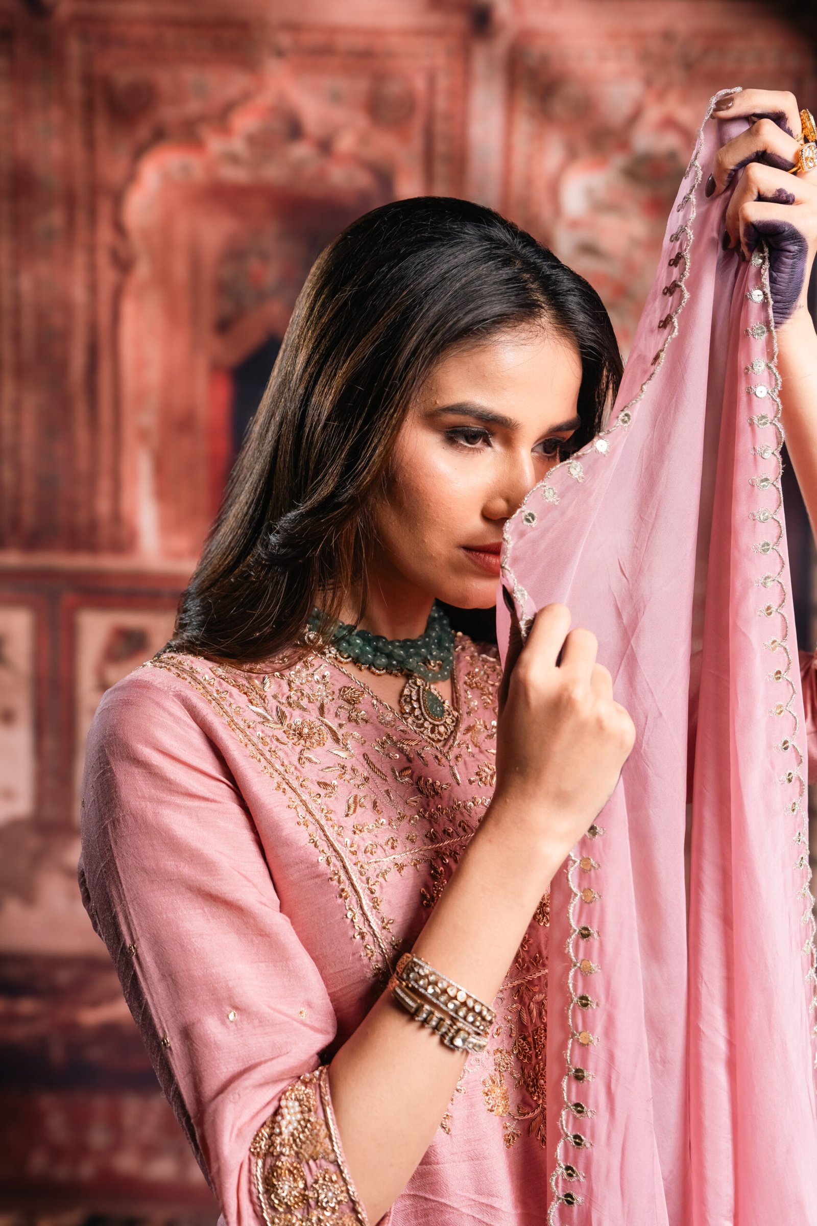 Minor differences in embroidery and finishing are part of the handcrafted process, making each sharara uniquely yours. The Silk Saga focuses on comfort, movement, and finish so you can celebrate with confidence and ease.