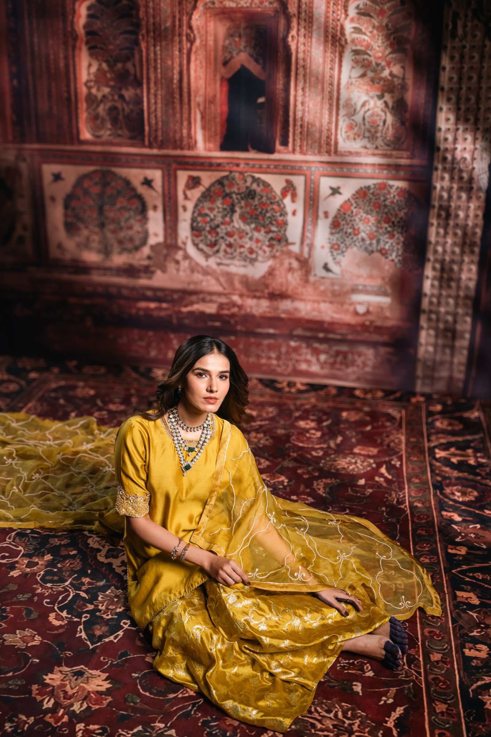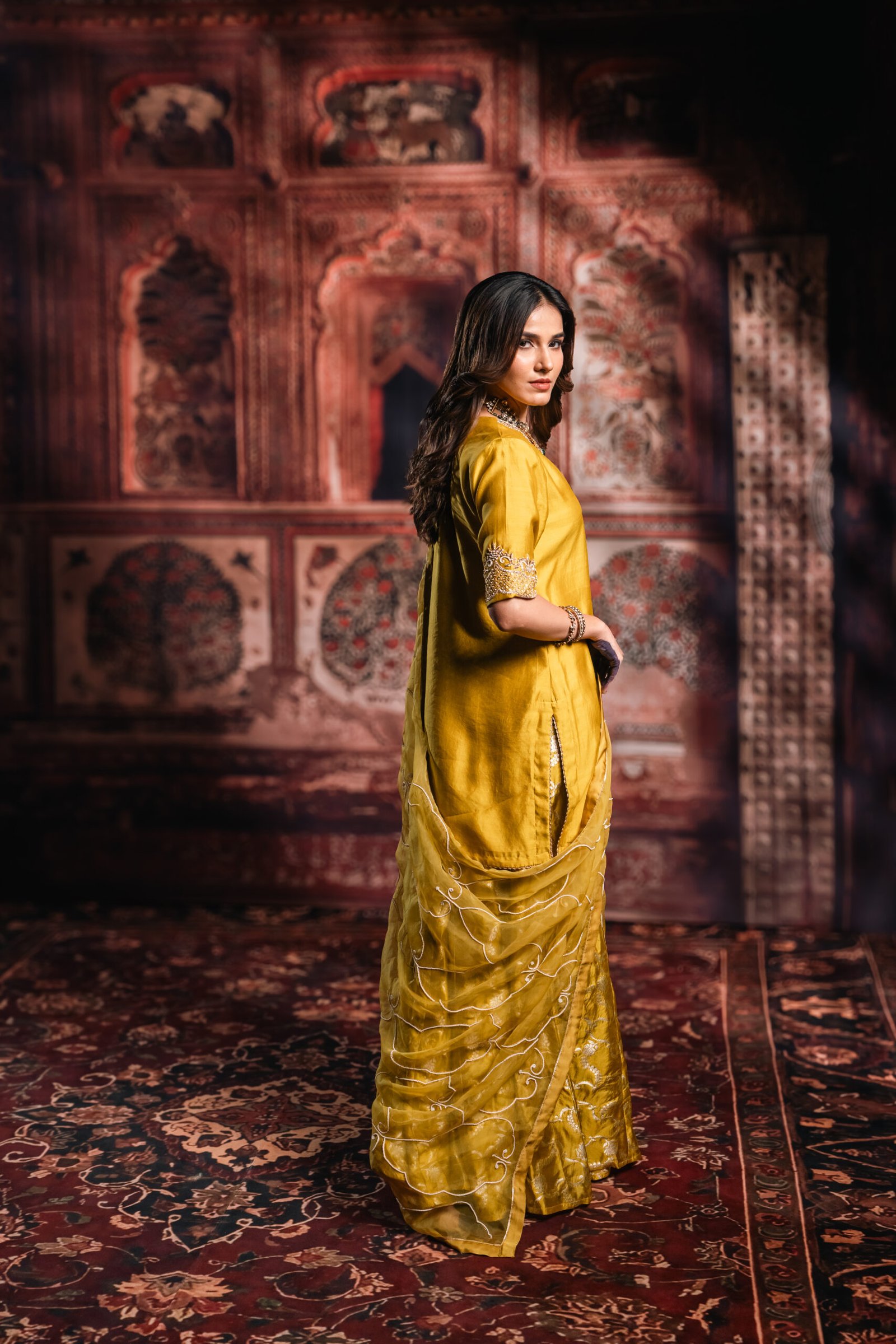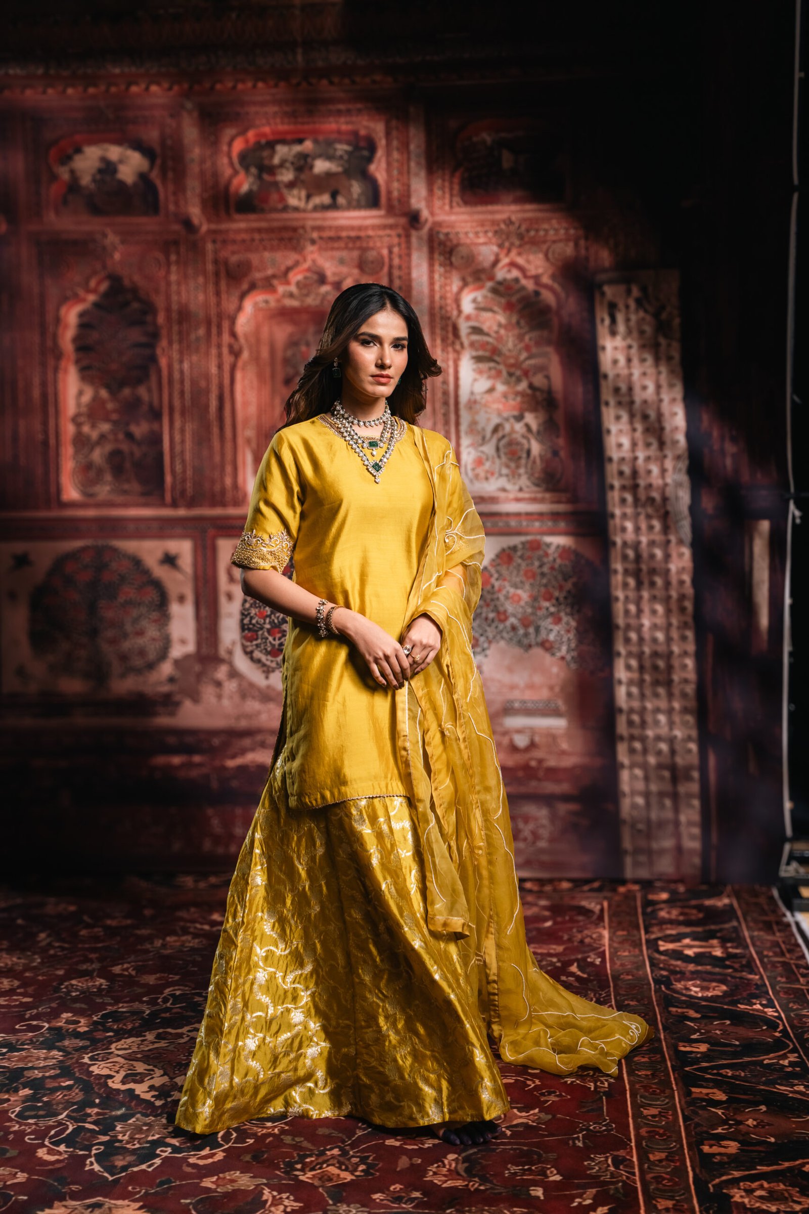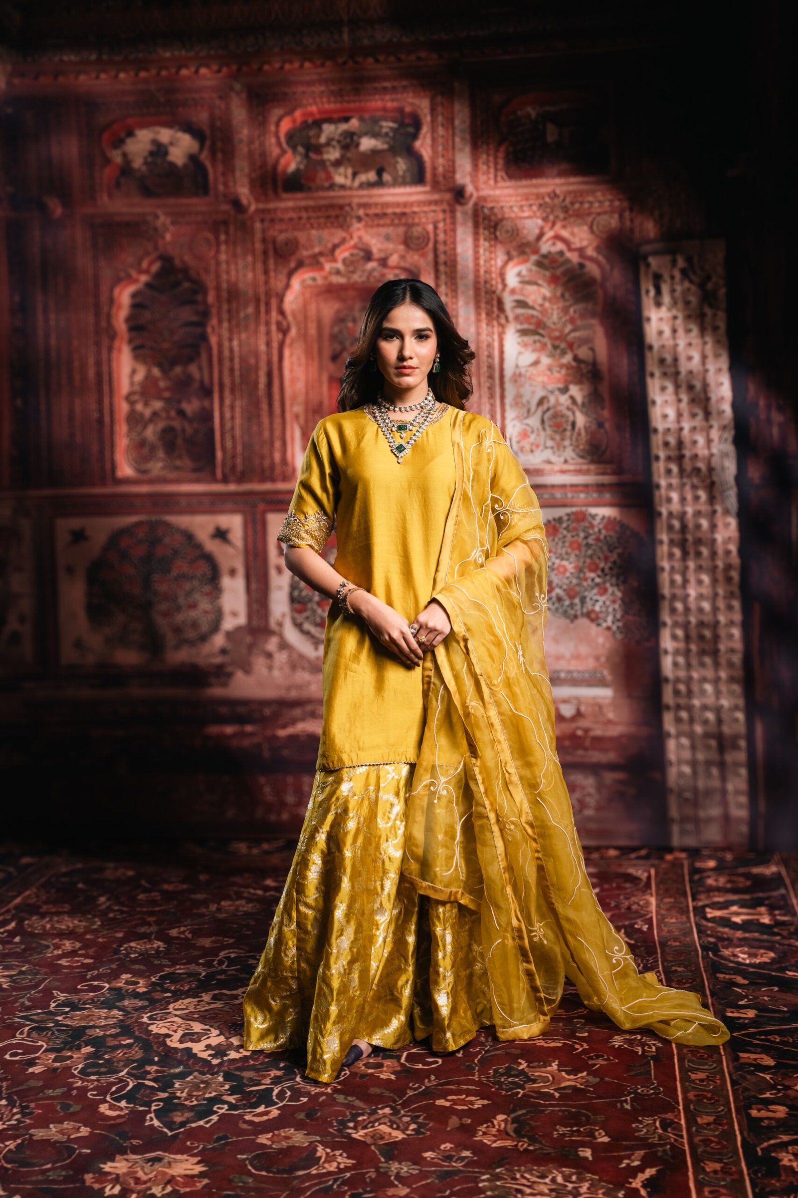 Subtle variations in embroidery, weave, or trim placement highlight the handcrafted nature of the garment. Every Ochre Yellow Sharara Set goes through quality checks at The Silk Saga to ensure comfort, colour, and finish meet brand standards.