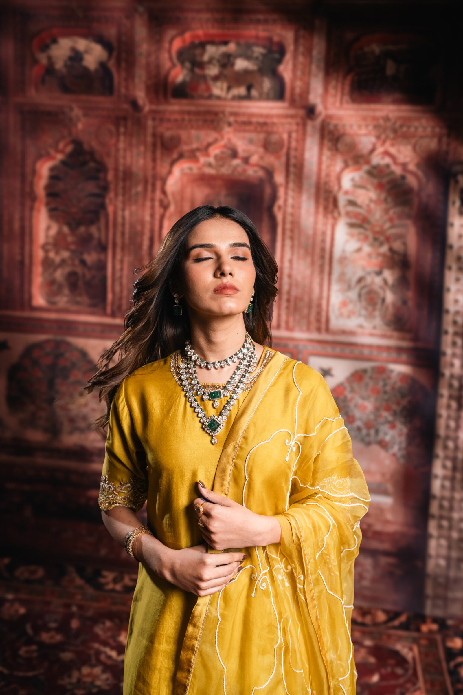 Haldi Ready: Pair with fresh floral jewellery and minimal makeup for a radiant, traditional haldi look.