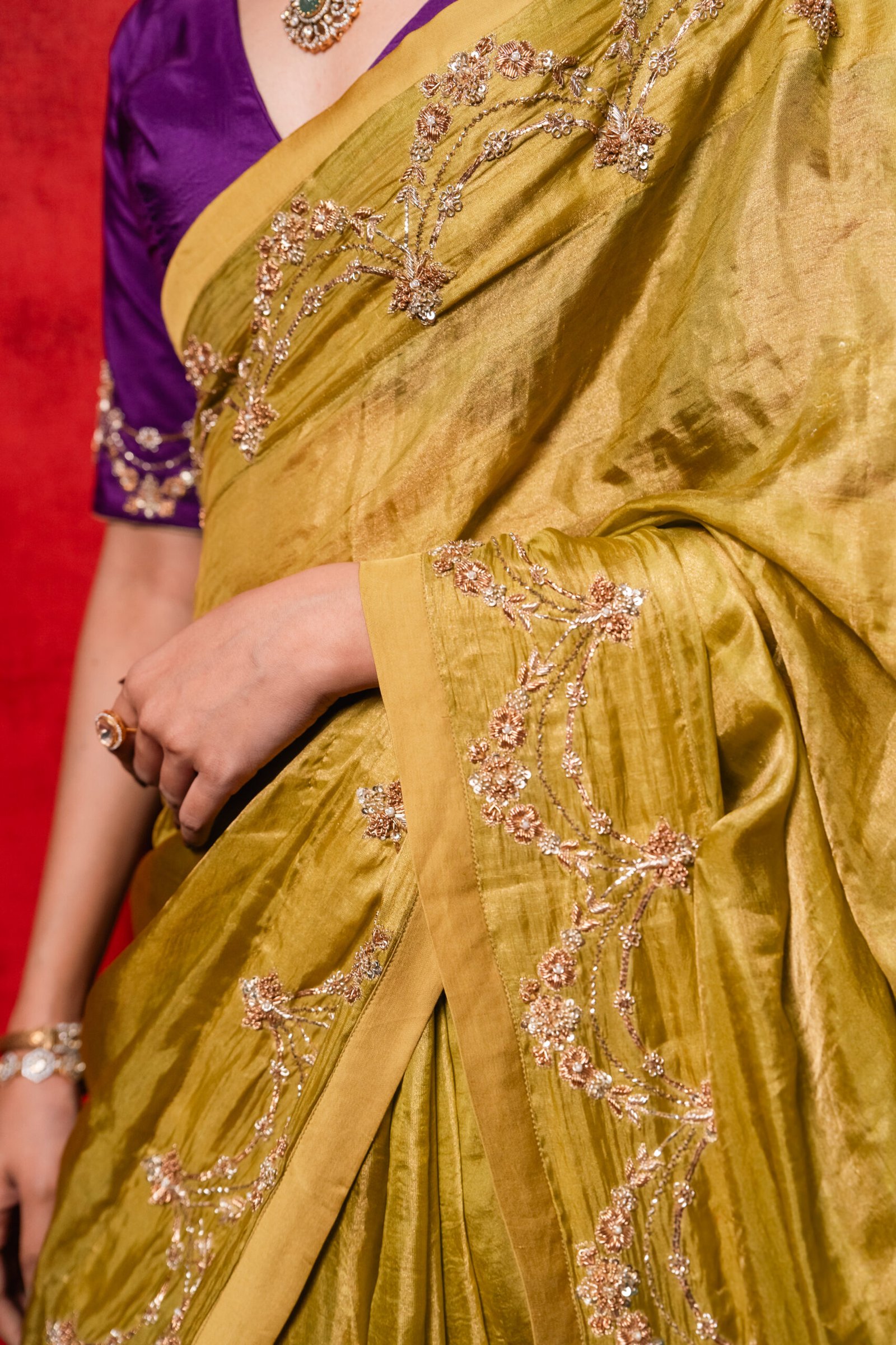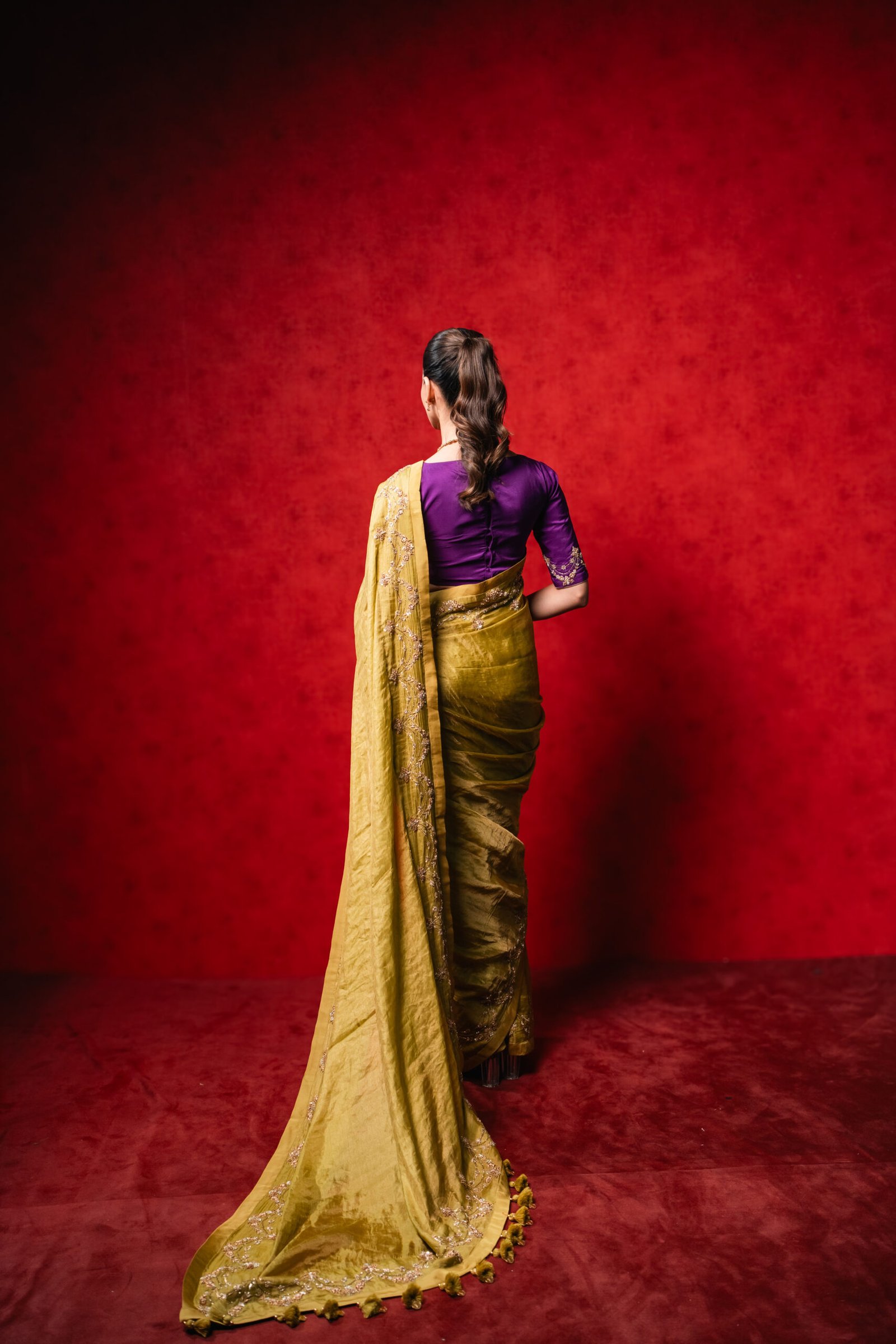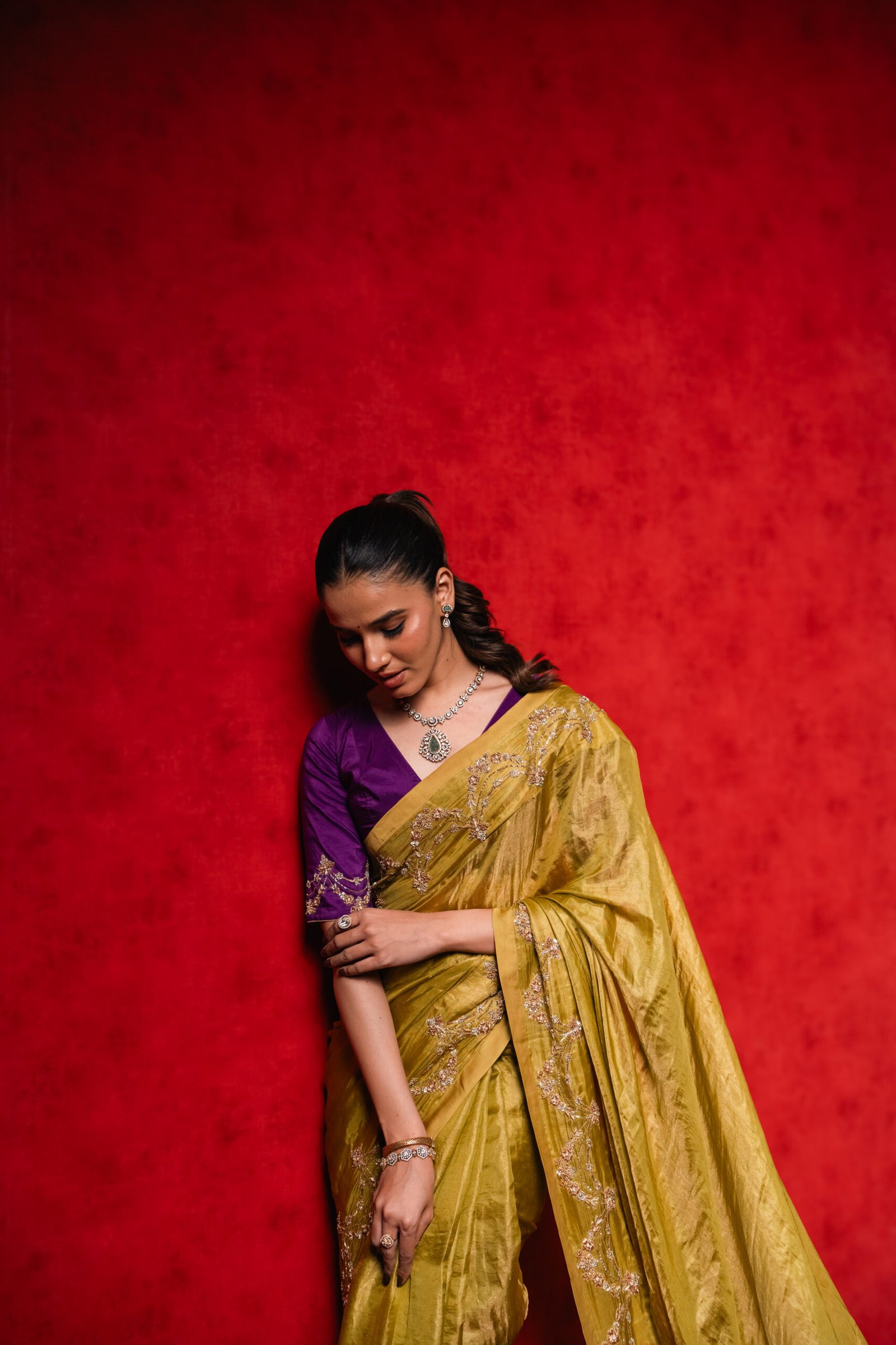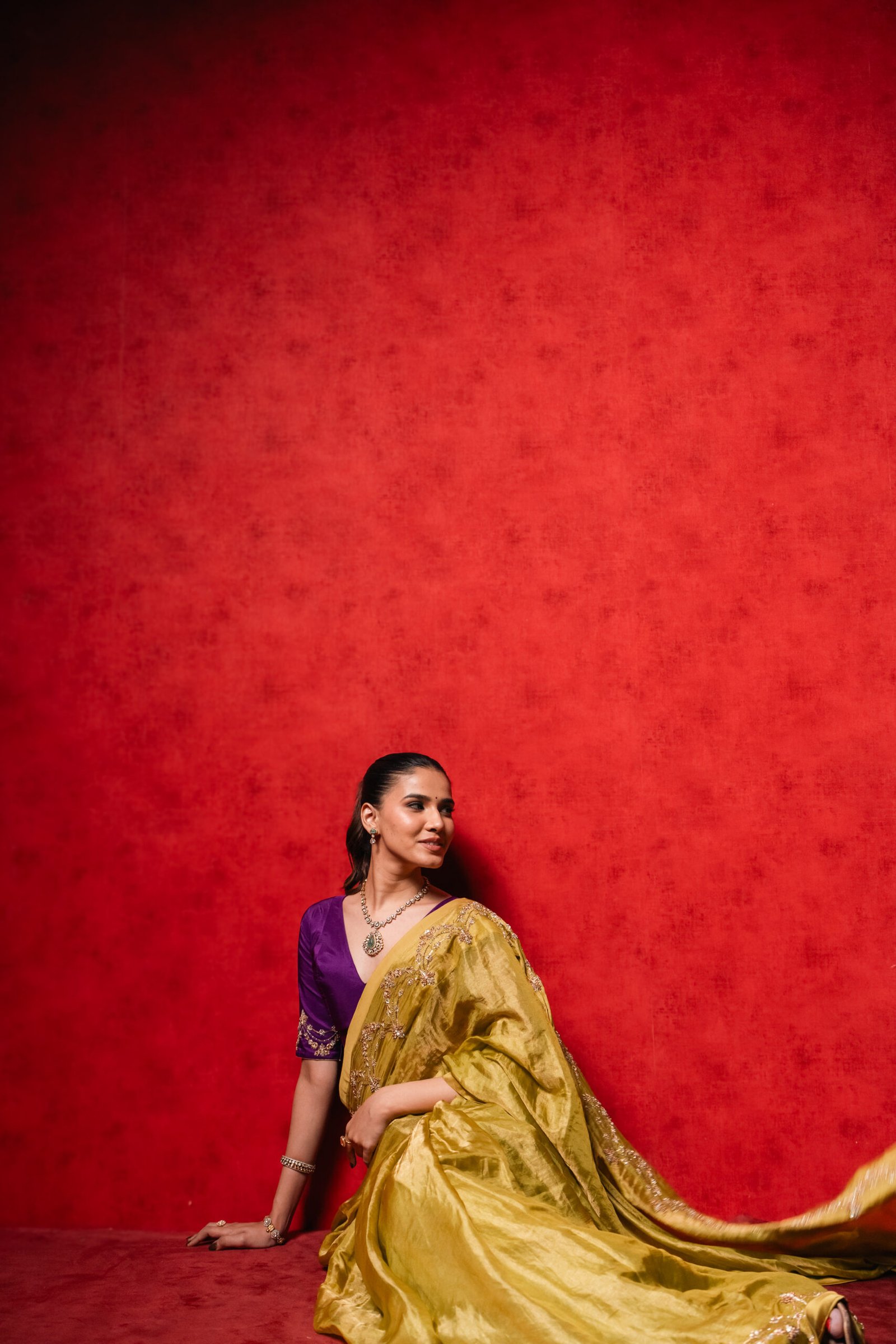 Festive Glam: Elevate with statement jewellery, bold lips, and embellished footwear for weddings, sangeet nights, or festivals.